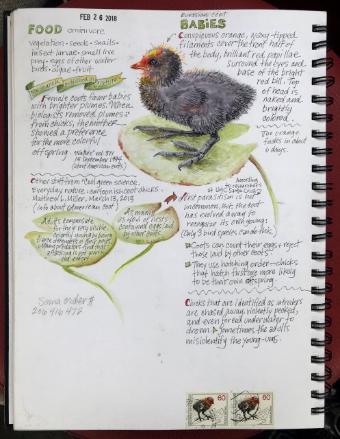 First Great Crested Grebe page – March 2018, 9×12″